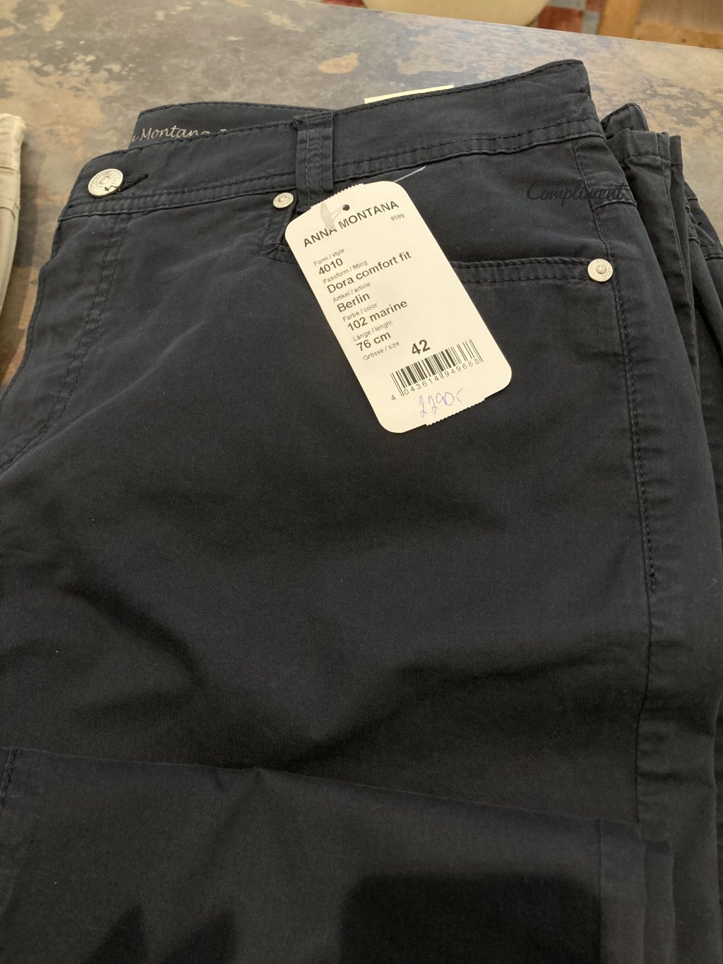Pevné plátěné kalhoty ANNA MONTANA jeansového střihu mají rovné nohavice, vpředu šikmé kapsy, vzadu kapsy nakládané pod sedlem. Štepování v barvě , v pase guma v bocích pro pohodlí při nošení:-).