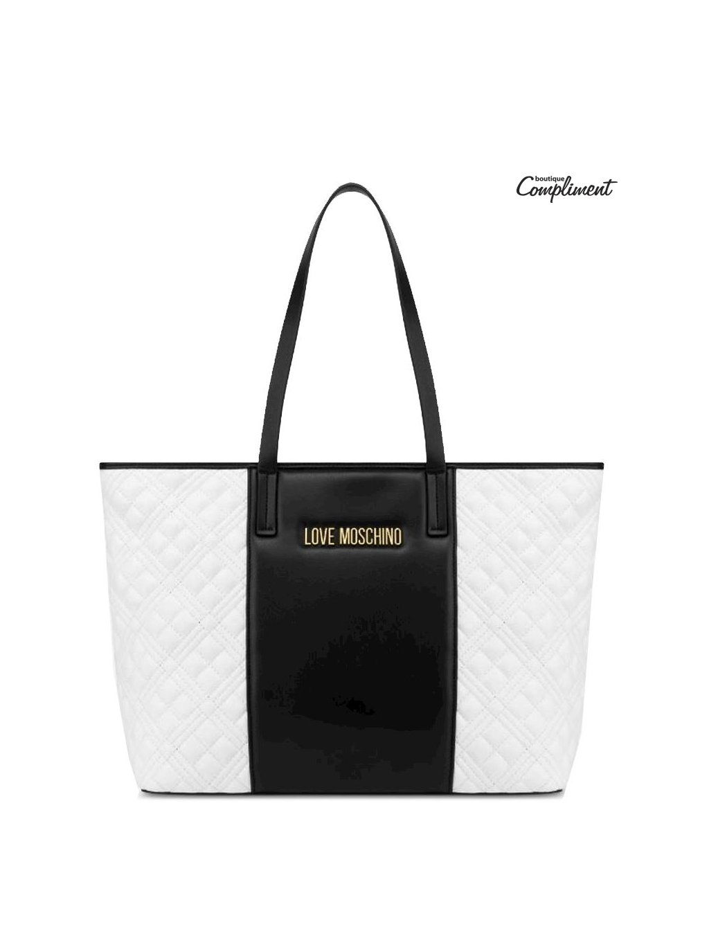 Shopper kabelka s prošívaným detailem v černobílé variantě. Dlouhá ucha ideální k nošení na rameni. Zapínání na zip.