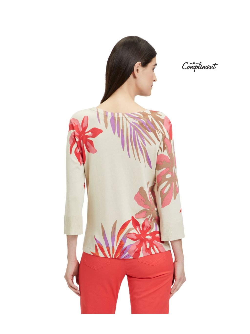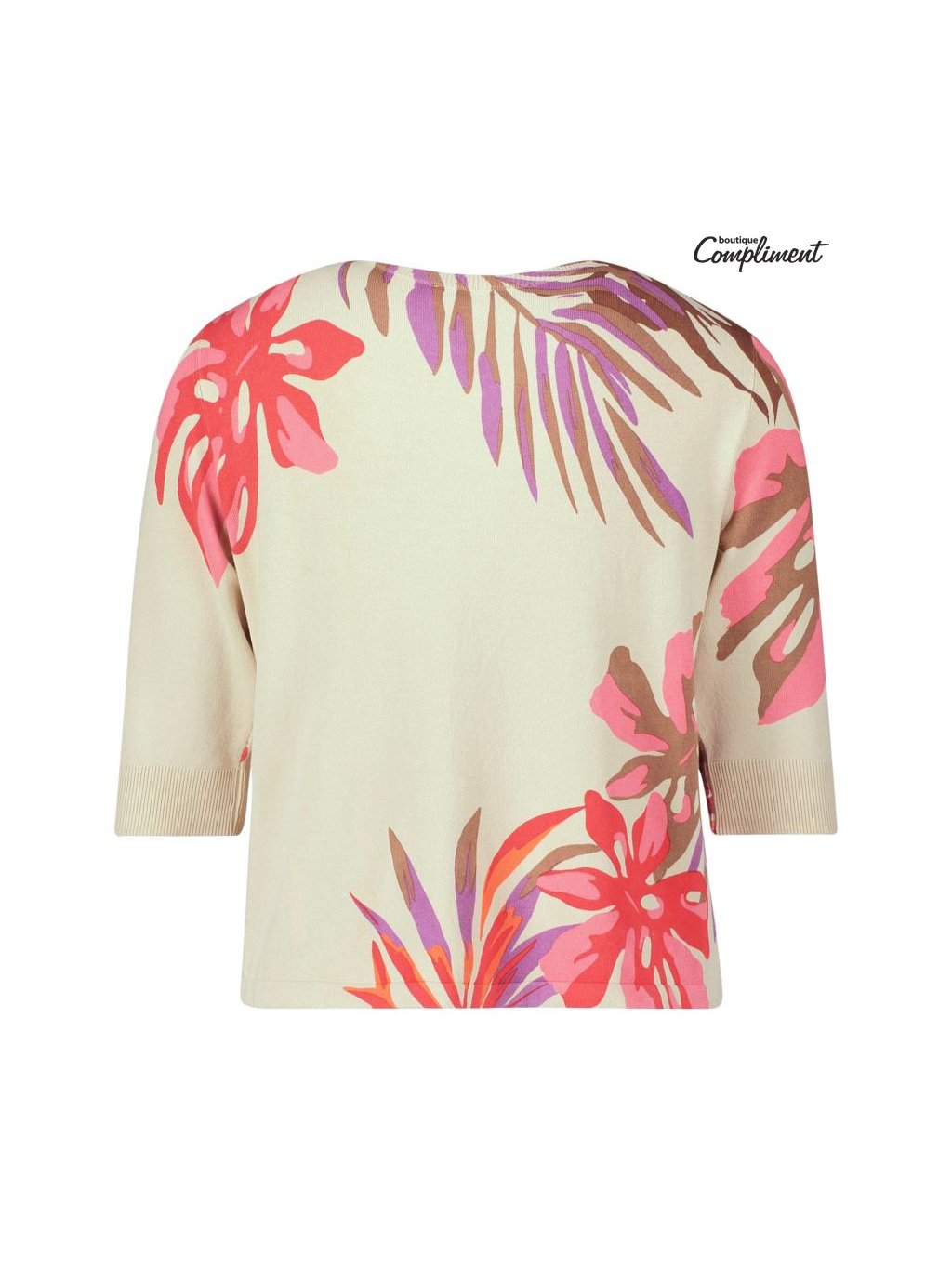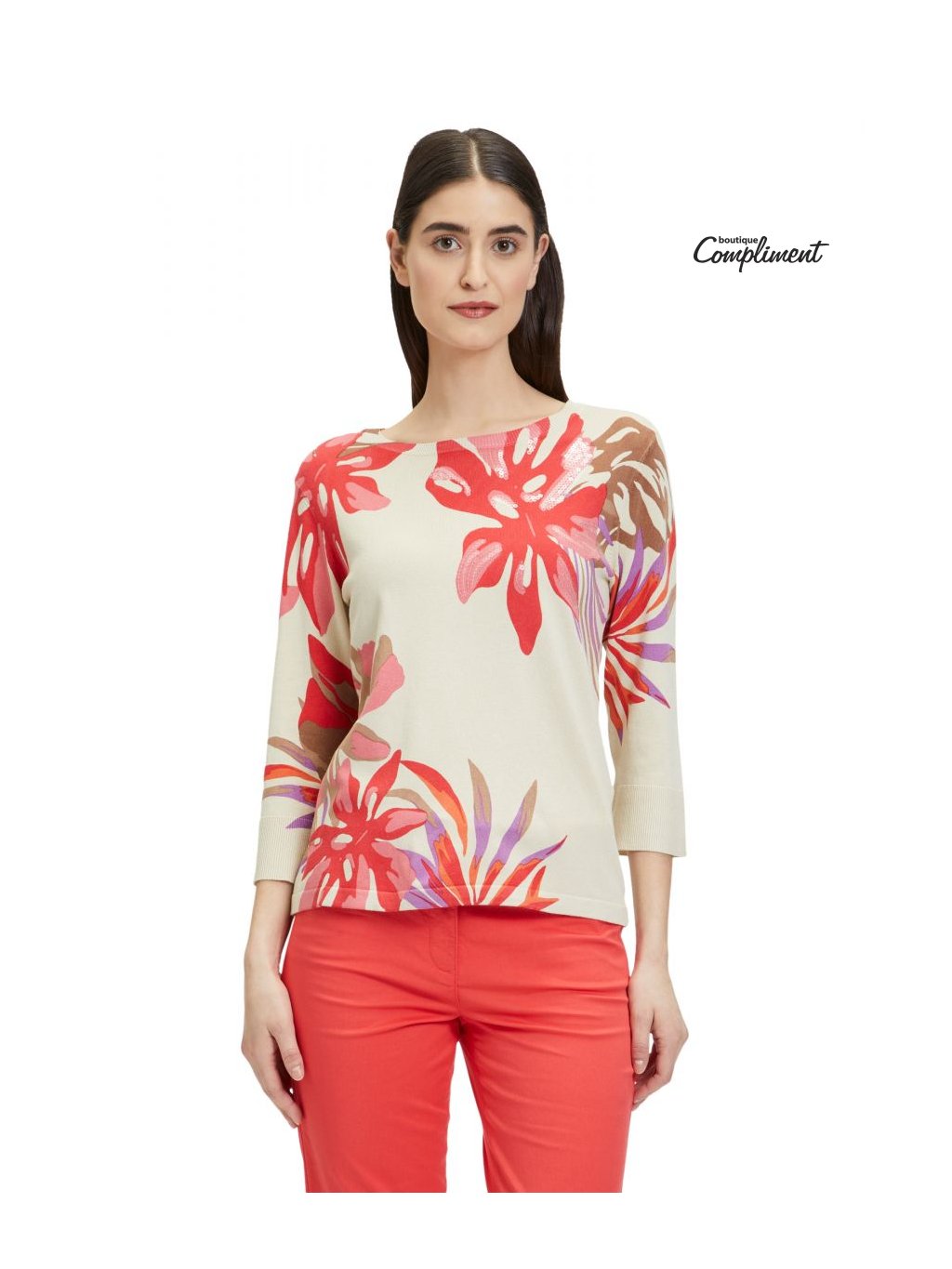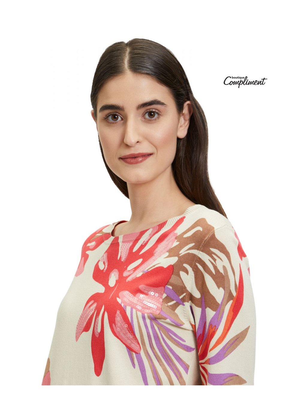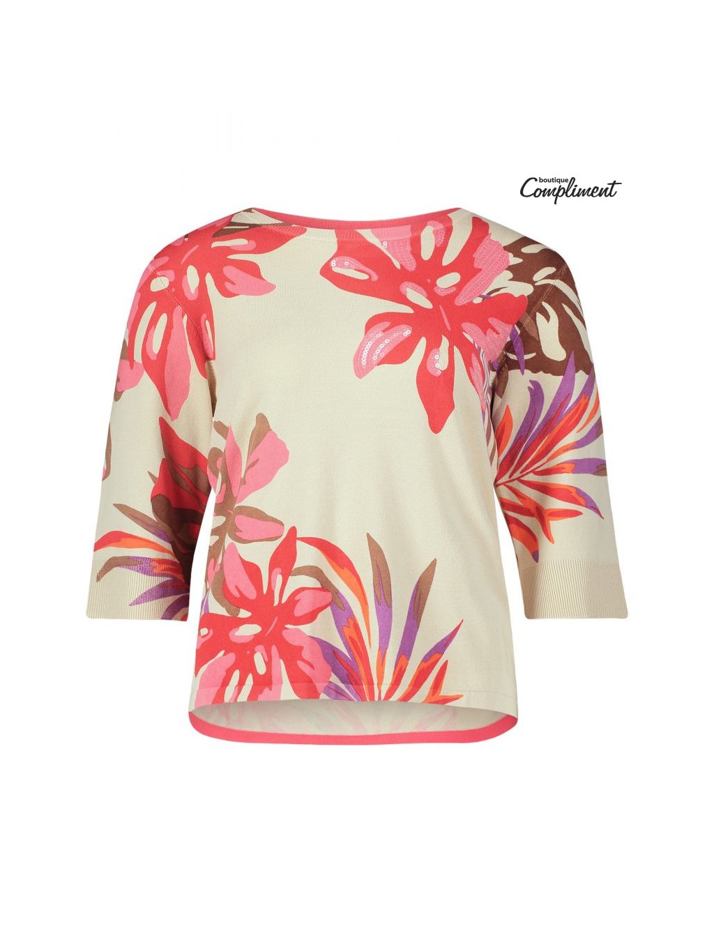 Slabý dámský svetr Betty Barclay s 3/4 rukávy zdobí velké barevné květy na béžovém podkladu.