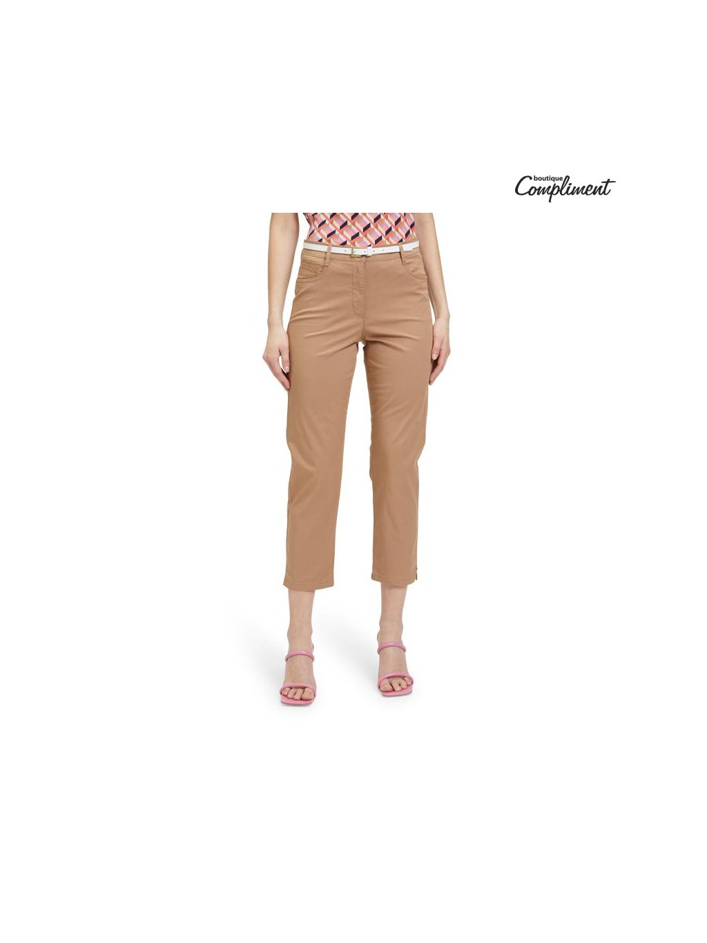 7/8 plátěné kalhoty Betty Barclay sportovního střihu vpředu s oblými, vzadu s nakládanými kapsami. Malé rozparky v délce jsou skvělým detailem.