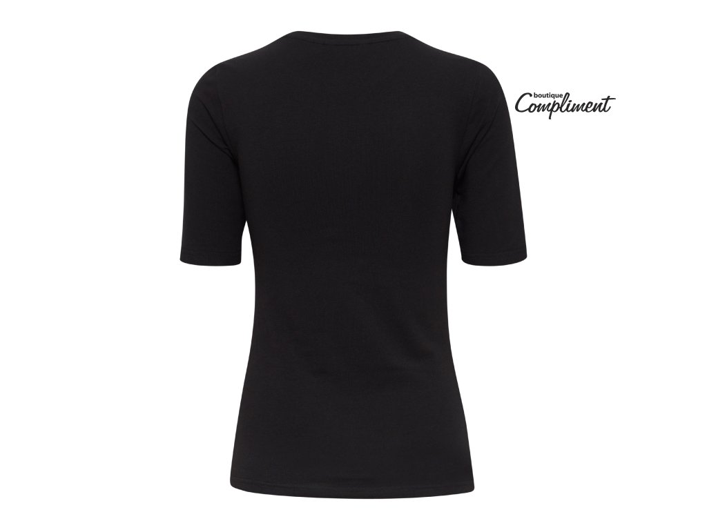 Triko s 3/4 rukávem a otevřeným kulatým výstřihem zdobí jemné stříbrné prošívání a logo u výstřihu.